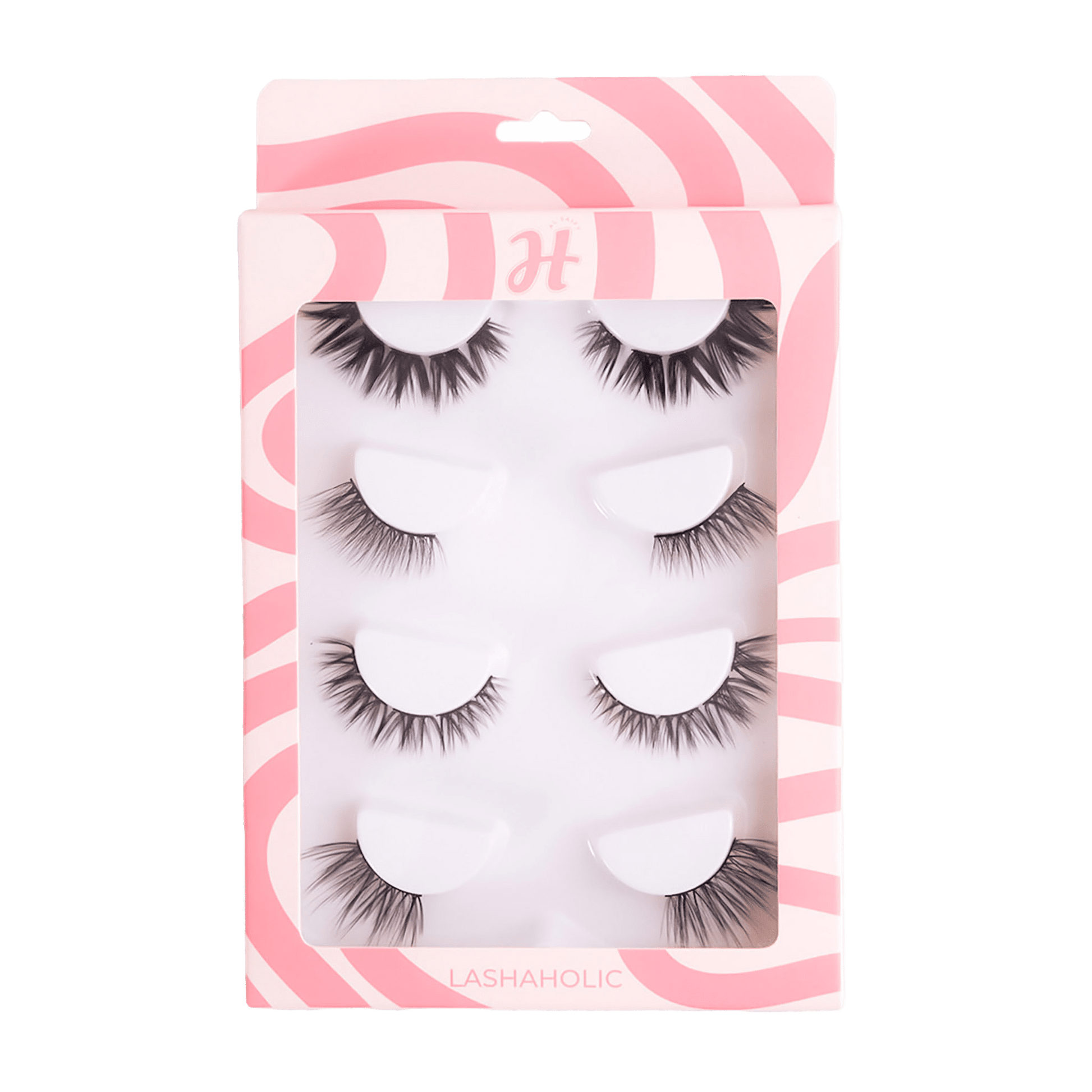 مجموعة من 4 رموش حريرية؛ رمشان نصفيان ورمشان منفصلان.