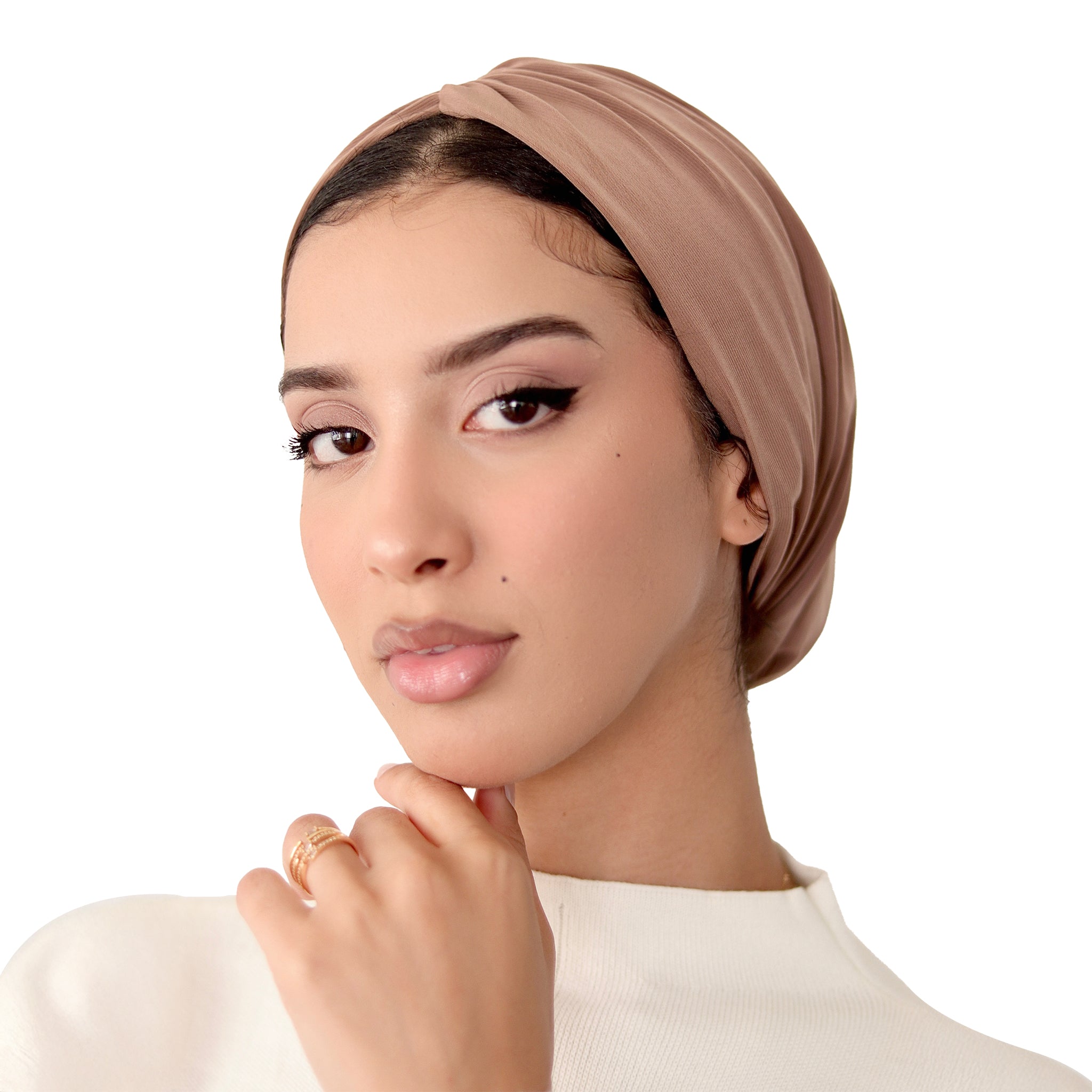 High-quality one-piece beige cap turban women turbans perfect for all occasions.